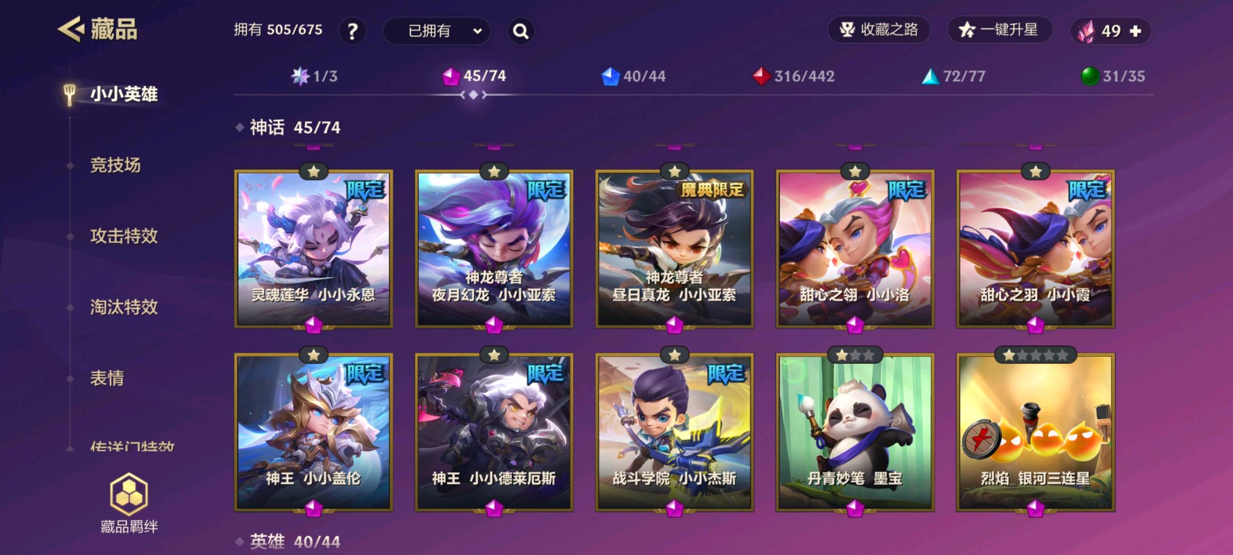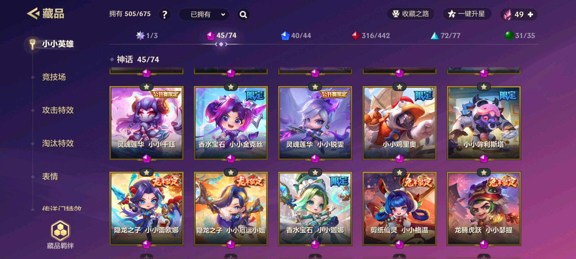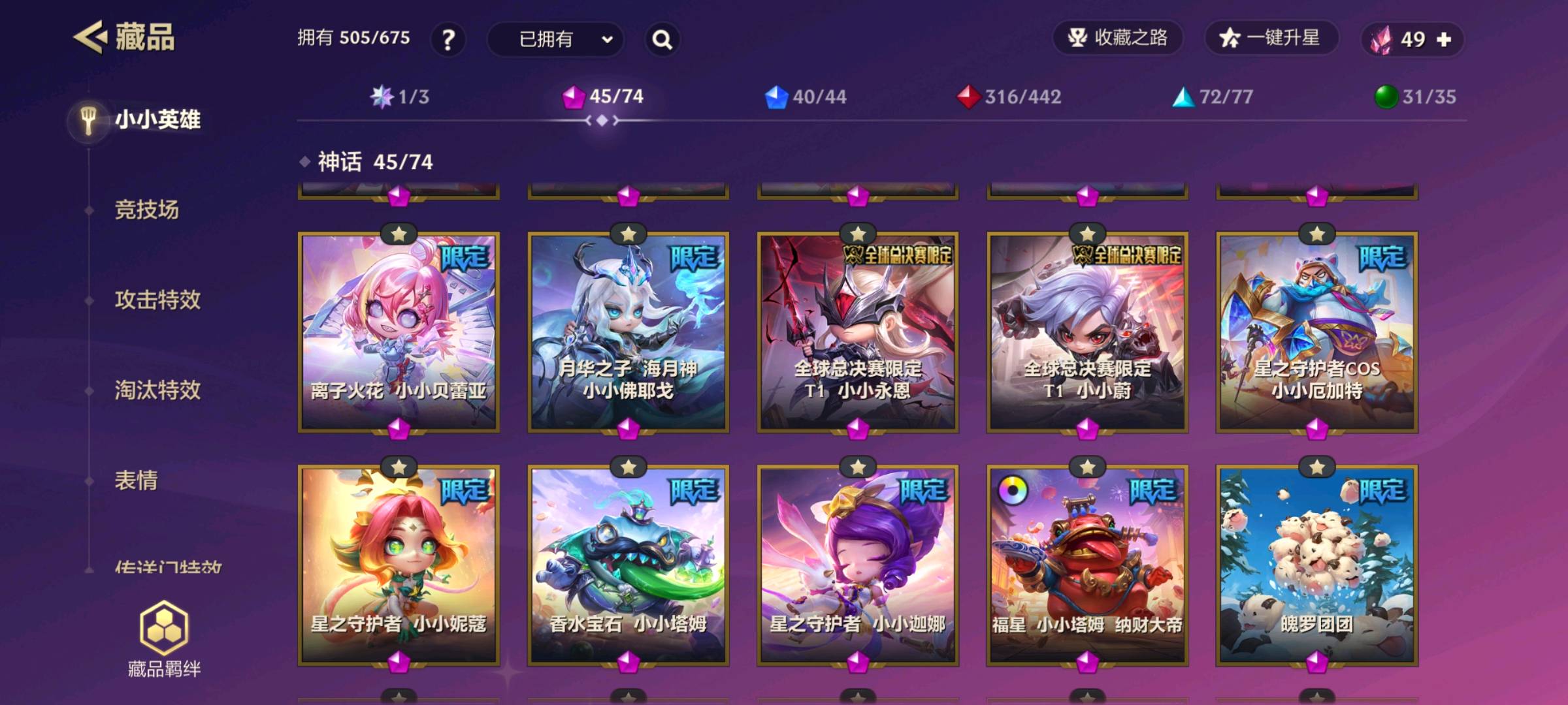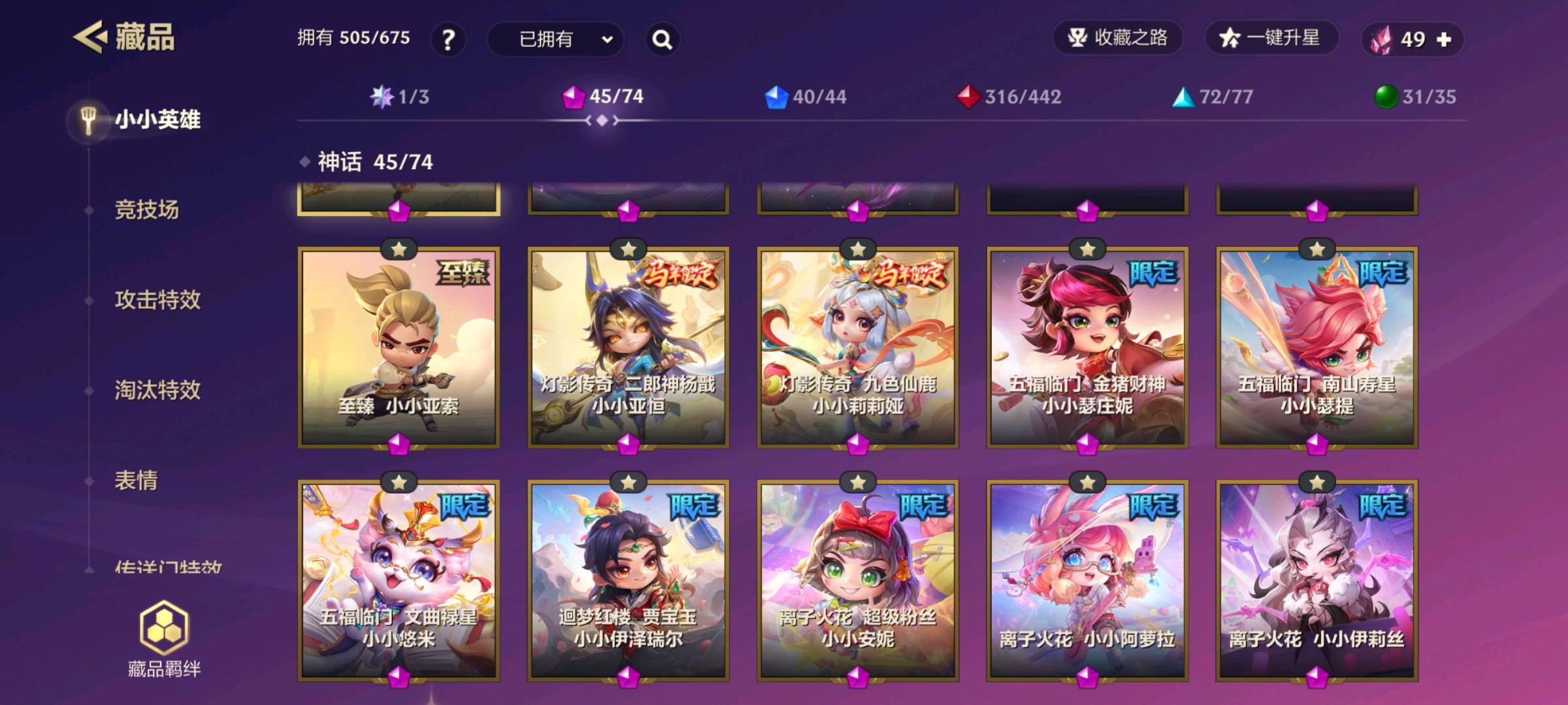 505小小英雄/45神话/不朽阿狸/昼夜双亚索/双形态蜘蛛龙女/至臻亚索/至臻火花格温/至臻星守卡莎