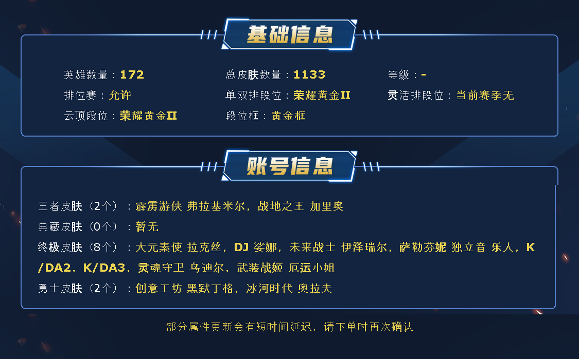 - 云顶段位: 荣耀黄金Ⅱ