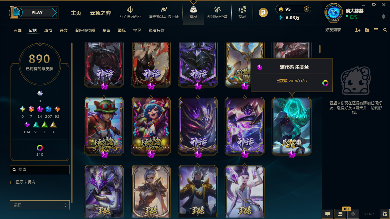 - 神话皮肤数量: 14